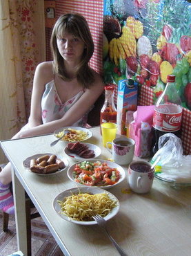 Сексуальная брюнетка только что вернулась из секс-шопа, где купила множество разных нарядов, и решила примерять один из них. Она оделась в потрясающее платье желтого цвета, которое едва покрывало попу, и состояло из ажурной ткани, и для того, чтобы завести окружающих, залезла на журнальный столик и стала раком. От увиденного мало кто остался не в восторге.