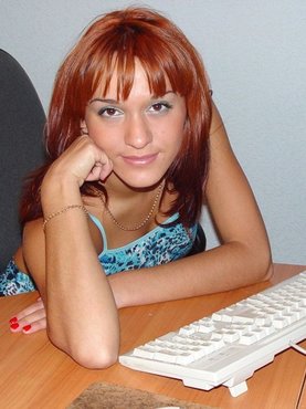 Рыжая бухгалтерша с загорелым телом позирует голышом в кабинете
