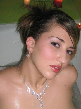 Голая пышка лежит на кровати и держит себя рукой за грудь