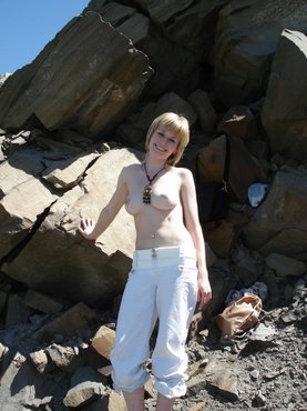 Деваху не смущает скалистый берег